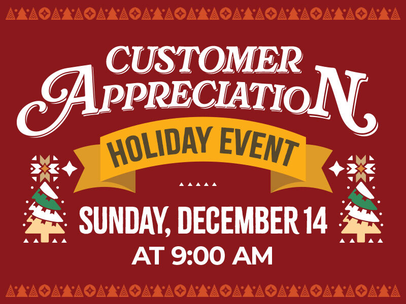 At our Customer Appreciation Holiday Event, customers can enjoy: