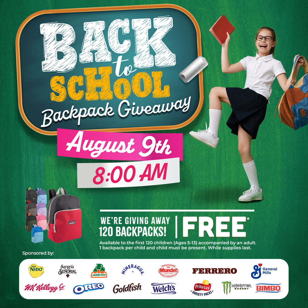Tony’s is giving away 120 Backpacks, available to the first 120 children, ages 5-13. Children must be accompanied by an adult and child must be present. One backpack per child, while supplies last.